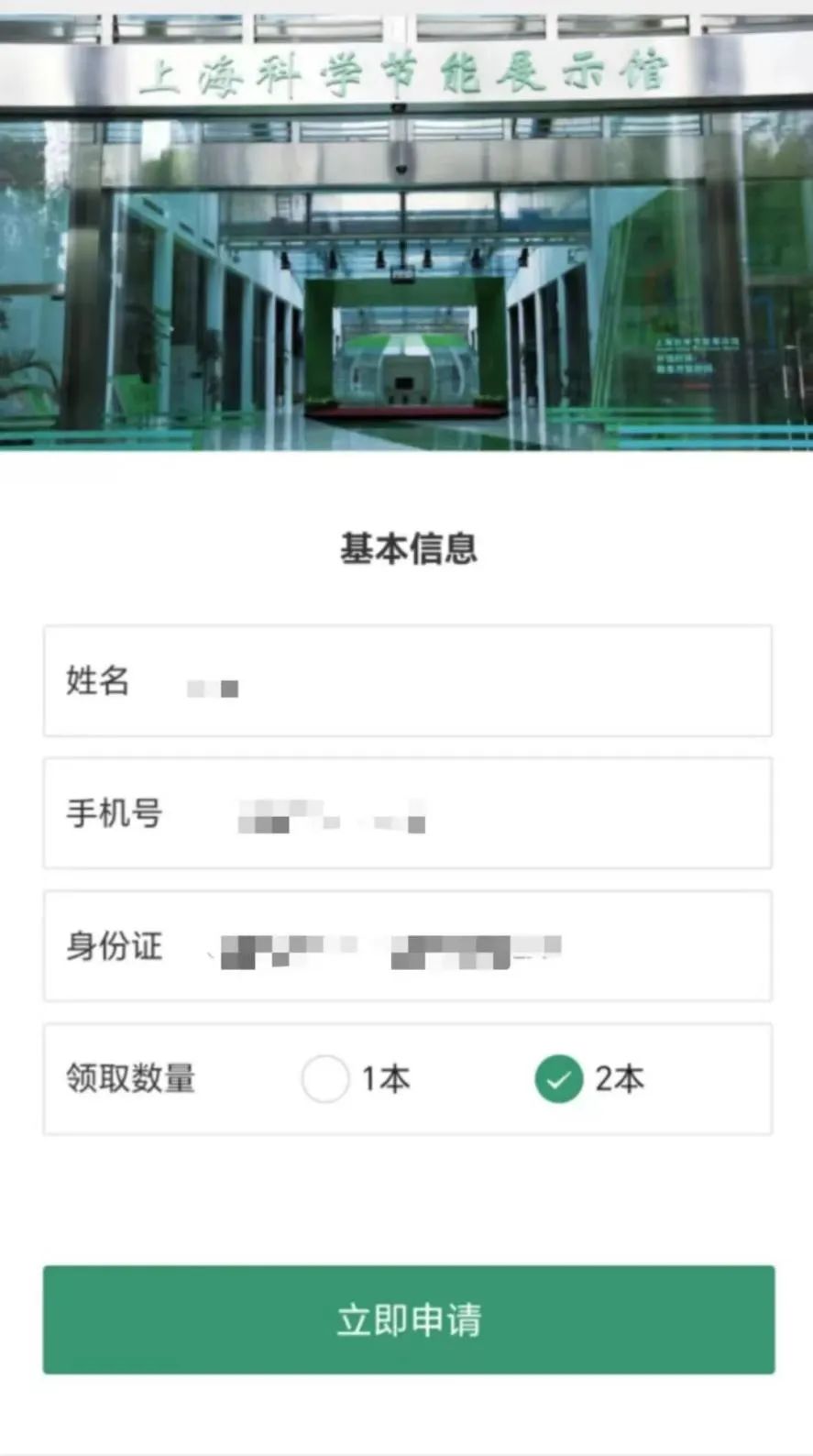 申请入口通常关闭,并在申请时间内打开。打开后,进入下面的页面,输入信息。可以选择一本或两本书来获取数量。选择完成后,点击“立即申请”。