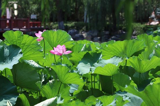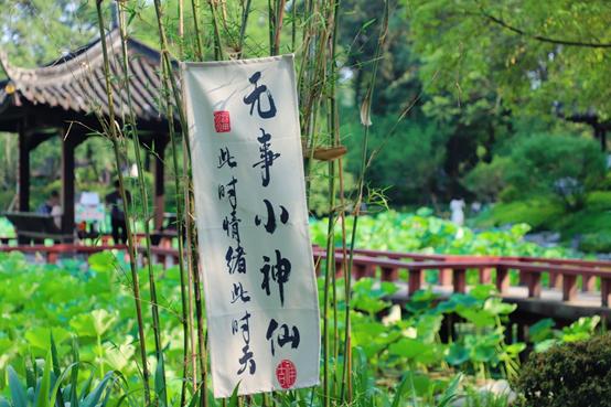 站在亭子里眺望或静座,光影透过花叶洒下,随手一拍就是古风大片。