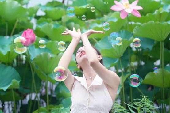 提前准备好仿真莲花,拿在手里或戴在头上,可增加与荷花的互动感。