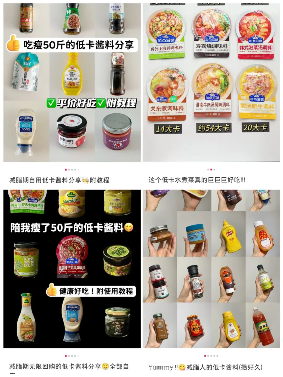 与此同时,DIY玩家赢得了低热量酱料。在小红书中,相关话题的阅读量已经超过1亿。从低热量的咖喱块,贵州红酸汤,到寿喜锅底...让食物更美味的调料成为生活减脂者的最爱。