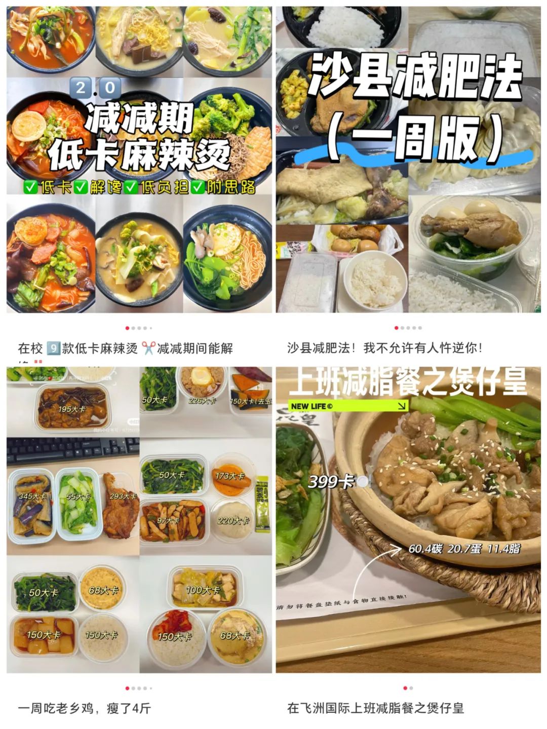 在小红书中,大量博主也在为各种常见的中式快餐提供高质量的热量评估,带领减肥者将排骨饭、猪脚饭、沙县小吃纳入科学饮食范围。