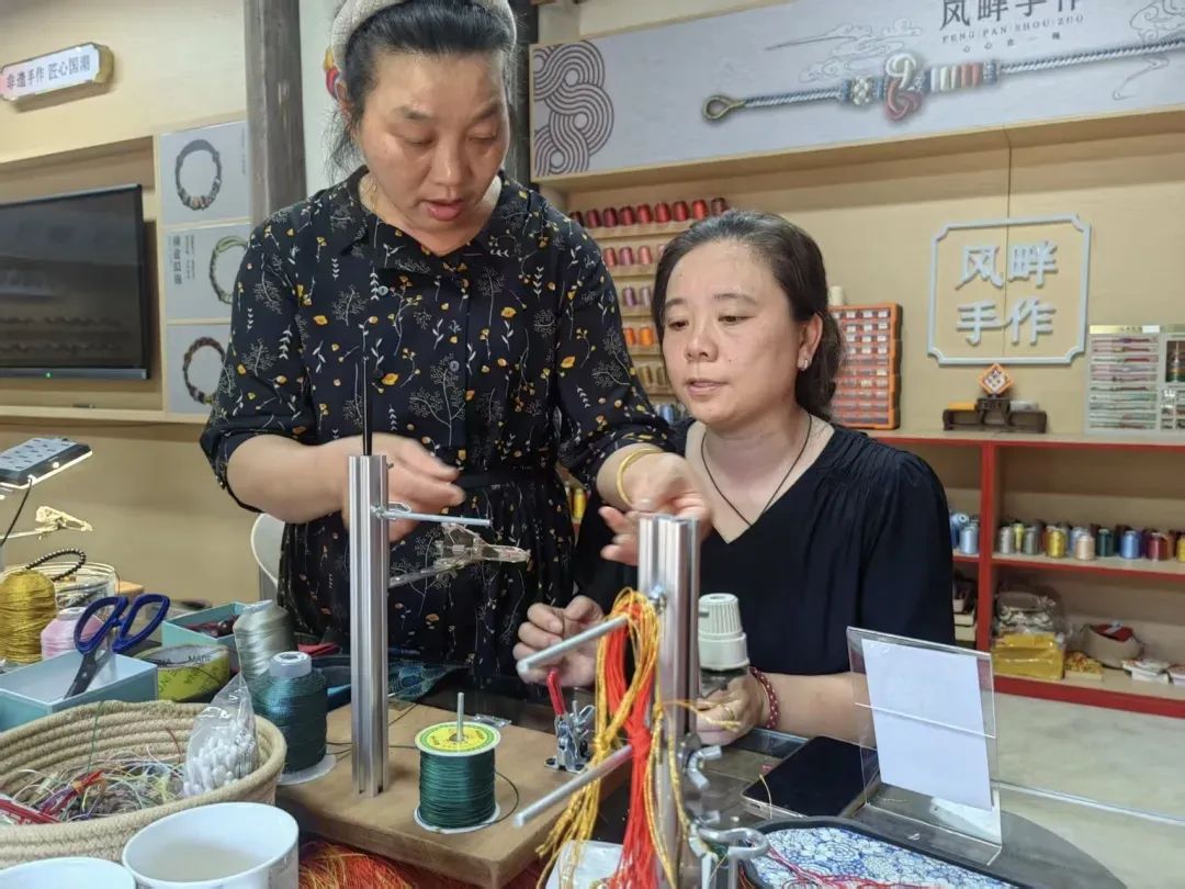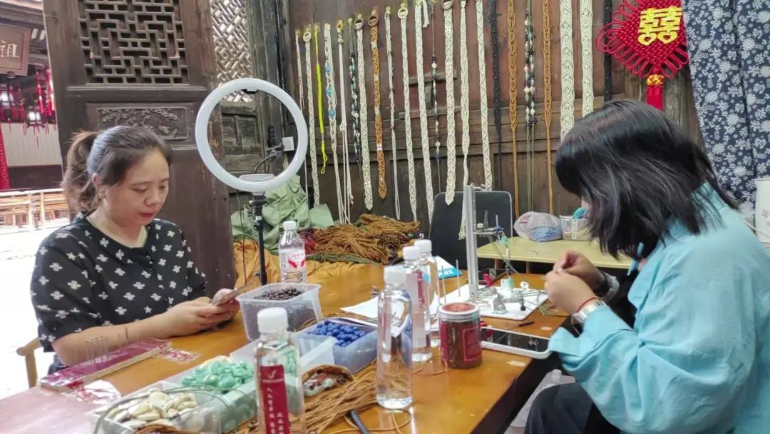 培训选择小组陪练教学方式,重点关注“一颗珠子”、“一根红绳”、“一辆平车”、“一根绳子”等富裕项目。通过对材料加工实践技能的学习,重点关注中国结、绳编等在家灵活就业的手工制品,并充分结合直播AI应用进行实践教学。毕业阶段,“0粉丝、新账号”学生成功销售手工制品和农产品,如“平车”藤编共富礼包,2小时总成交额超过650单。