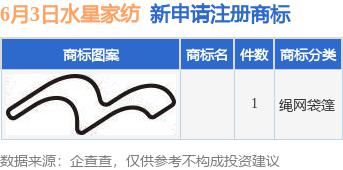 证券之星消息,根据天眼查 APP 数据显示,上海水星家用纺织品有限公司近日新递交 1 商标申请。商标申请的详细信息如下: