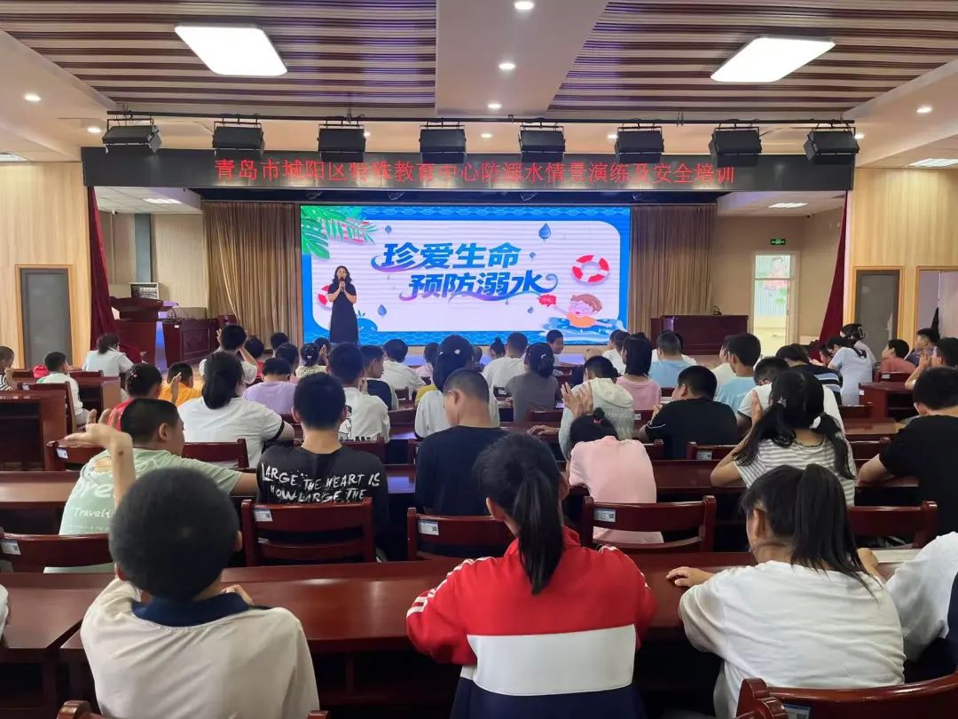 城阳区特殊教育中心对防溺水情景进行训练和安全训练。