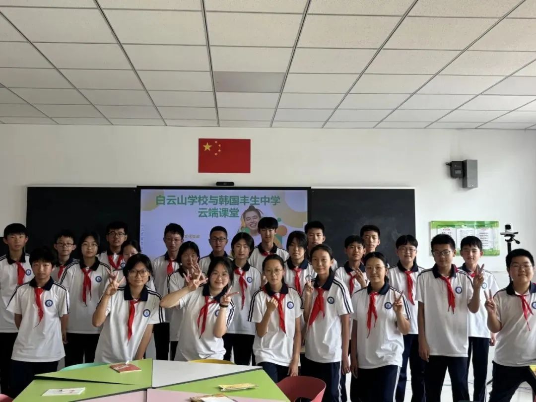 城阳区白云山学校与韩国丰生中学师生代表进行云交流活动。