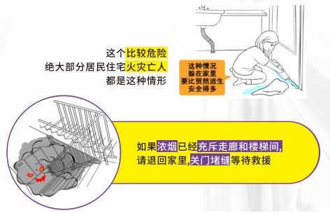应塞紧门缝防烟,坚守待援