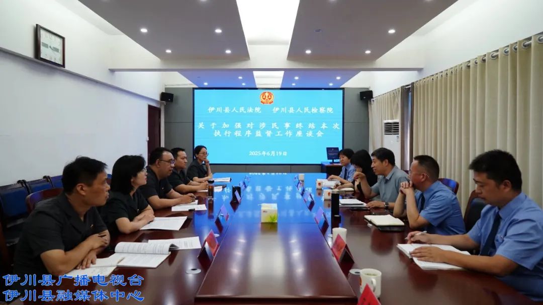 6月19日,伊川县人民检察院和伊川县人民法院联合召开座谈会,加强对民事最终执行程序的监督。双方围绕解决“执行难”问题进行了深入沟通,共同探讨了合作共赢的新路径。洛阳市检察院第六检察部主任王铁峰到会指导。
