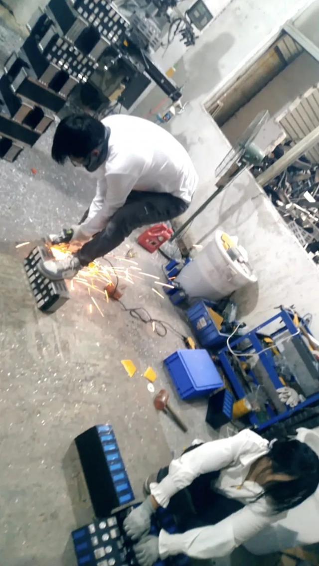 根据本报的实地走访,工人们用切割机和锤子切割和拆卸电池,切割火星。就连负责人自己也直言不讳地告诉记者: