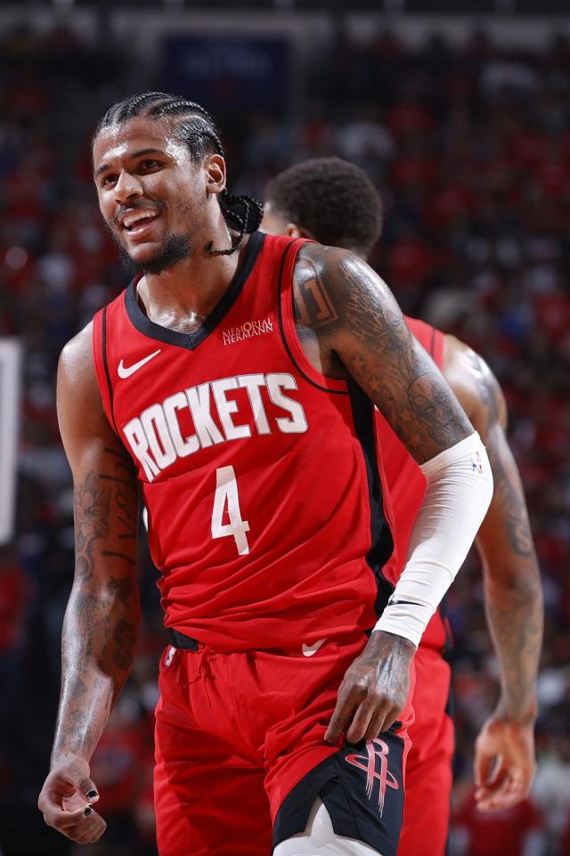出生于杜兰特 1988 年 9 月 29 日子,即将年满 37 年龄。这个赛季他在太阳打球。 62 场上常规赛,场均 26.6 分 6 篮板 4.2 助攻 0.8 断球 1.2 盖帽 3.1 错误,三个准确率:52.7%、43%、83.9%。杜兰特的进攻效率仍然很高,火箭队也需要这样的明星。