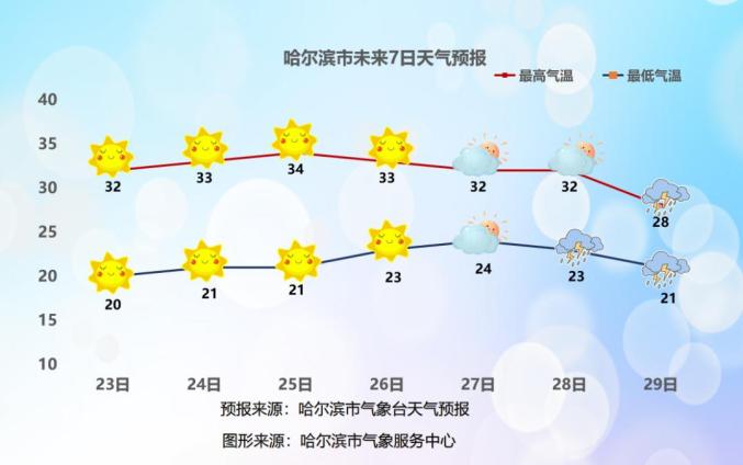 2025年6月22日,哈尔滨市气象台发布了22日晚至25日的全市天气预报: