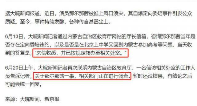 在此期间,许多官方媒体参与质疑那尔那茜的丑闻。据了解,内蒙古相关部门已经开始调查,但结果尚未出来。