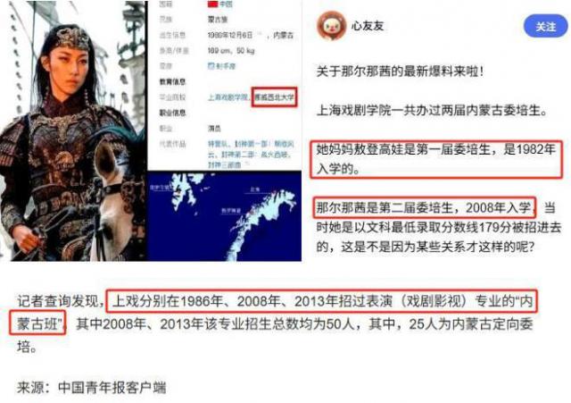 得知父亲是央视的制片人,他们家和上戏领导关系密切,甚至有人说那尔那茜的妈妈傲登高娃也是“定向培训”的受益者,公众对那尔那茜的深造内幕逐渐做出了决定。