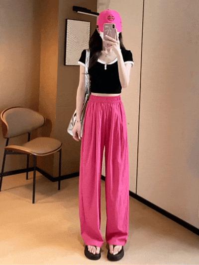 以阔脚裤为原型,上身显瘦,穿着舒适