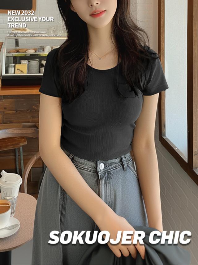 特妮娜这款 T t恤采用传统的正肩设计,肩线正好落在大臂外侧,装饰肩颈线效果一流。