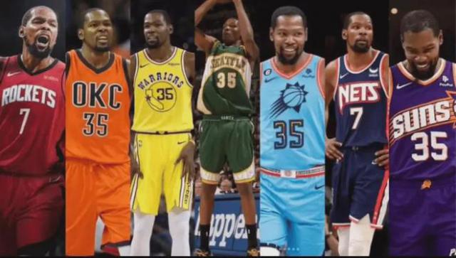 对杜兰特来说,休斯顿火箭队是他职业生涯的第一名。 6 团队,在此之前,他一直在超音速、俄克拉荷马雷霆、金州勇士、布鲁克林篮网、菲尼克斯太阳等领域工作。一些细心的网友发现,杜兰特今天的成就加上了。 他已经收集了红色、橙色、黄色、绿色、蓝色和紫色的战斗服,这个话题对杜兰特来说有点太伤人了!