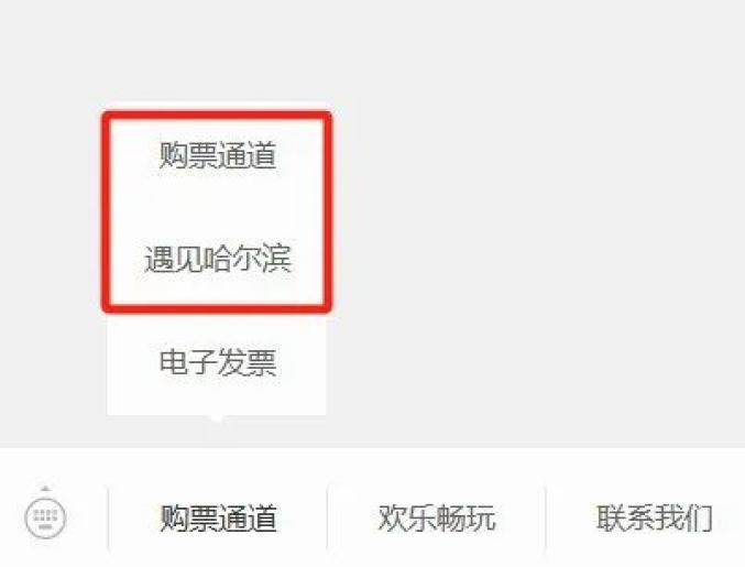 ▲ “哈尔滨冰雪世界”微信微信官方账号菜单栏