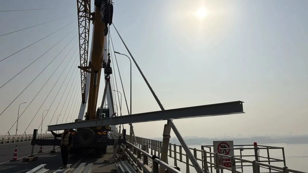 近日,南京大胜关长江大桥主桥纵向支座更换工程顺利通过交工验收,意味着该重点桥梁养护工程顺利完成。项目历时5个月,主桥南北主塔、南北辅助墩、南北过渡墩12个纵向支座、引桥8个盆式支座成功更换。部分更换支座最大重量为8.1吨,是江苏省目前更换的最大吨数球形压缩支座。