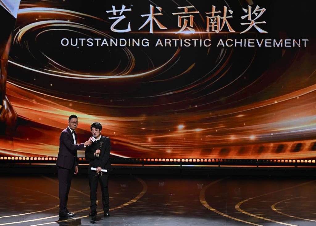u2003u20036月21日,获得金爵奖艺术贡献奖的《如父子》导演仇晟(右)上&领奖。新华社(陈浩明摄)