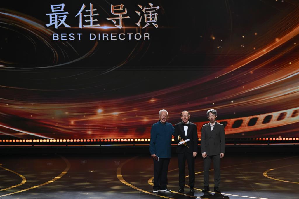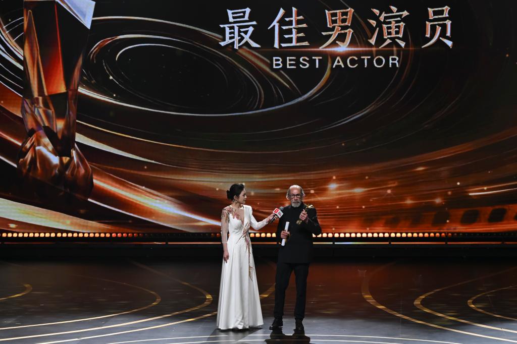 六月二十一日,曹保平获得金爵奖最佳导演奖,领奖。新华社(陈浩明摄)