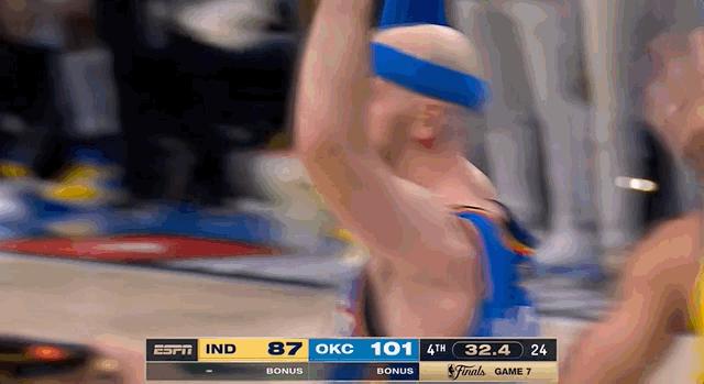 今日总决赛抢七,第三节之前,双方还你来我往,旗鼓相当。第三节,双方打成一片 56 平静之后,雷霆继续前进 3 一个三分球,几次上演断球,直接让步行者哑火。