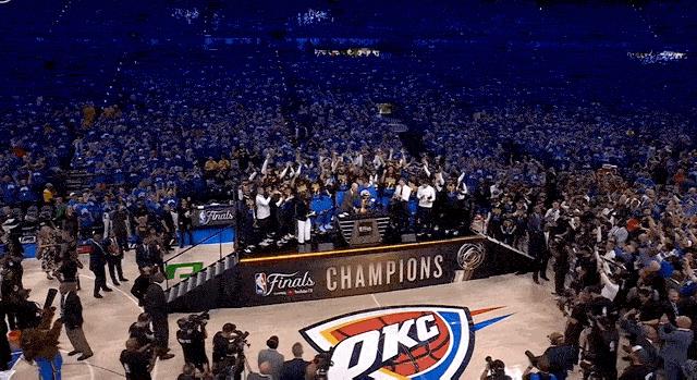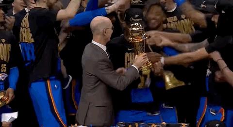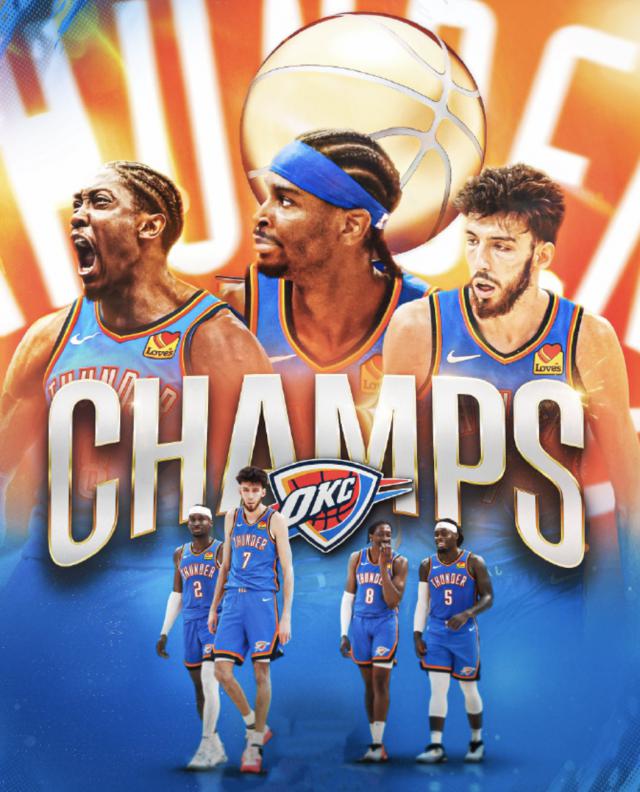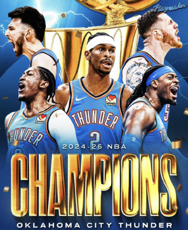 比赛结束后,在颁奖典礼上,雷霆全员举起了 2024-25 赛季的 NBA 总冠军奖杯。