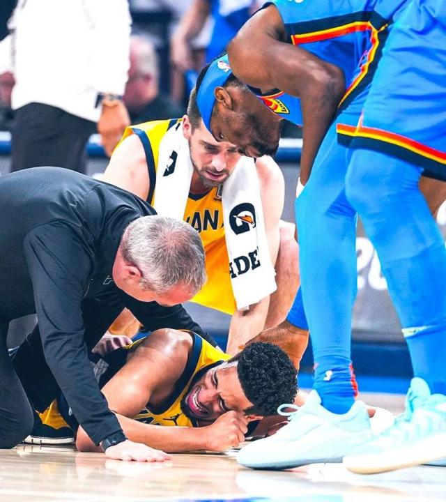 今天,NBA 决赛进行了最后一场比赛,赢得了冠军。比赛第一节,哈利伯顿感觉很火爆,不到半节。 5 投 3 中拿到 9 分,就在大家都以为他要爆发的时候,命运给了他一个笑话。在一次突破中,小腿明显震动,然后痛苦地摔倒,拍打着路面。