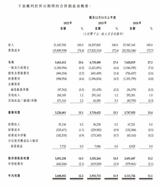 据招股书,2022 年 -2024 2008年,三花智控实现收入分别是 213.48 亿元、245.58 亿元、279.47 年内利润分别为亿元; 26.08 亿元、29.34 亿元、31.12 亿元。