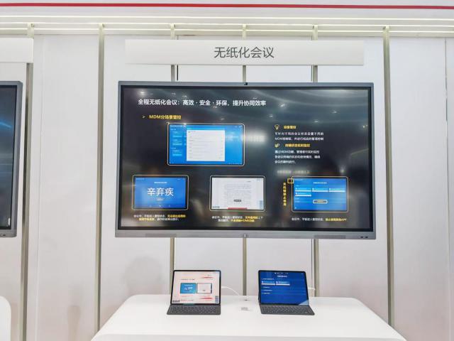 这次展览的另一大亮点是u200f擎云智慧金融解决方案。该方案包含了金融业的许多关键场景,为金融业的数字化转型提供了全面而有力的支撑。例如,在擎云智慧金融 - 以商用平板为核心的无纸化会议场景,巧妙地将文档、会议、办公、管理四大安全能力融为一体。会前,通过分级分发文档,严格保证信息安全;会议期间,即时同屏注释、投票等功能大大提高了决策效率;会后一键销毁文件,完成了会议信息全过程的安全可控性,完美满足了金融机构对会议效率和信息安全的双重需求。u200f