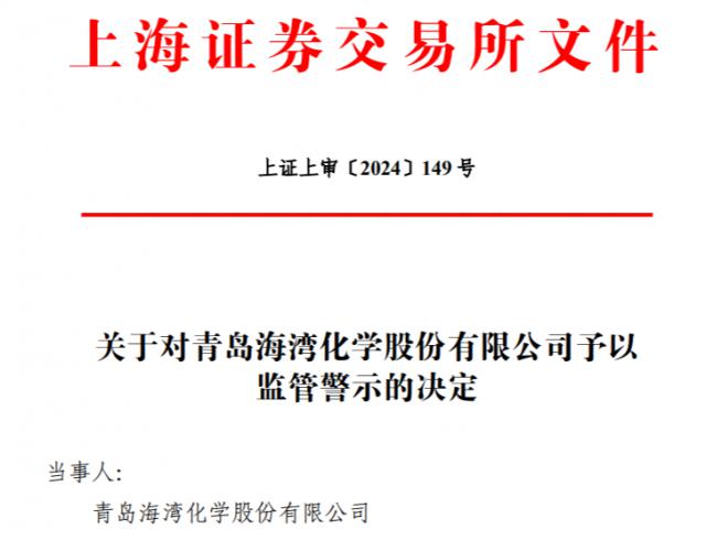 鉴于上述事实和情节,上海证券交易所上市审计中心根据《审计规则》第十条、第七十二条、第七十四条、《上海证券交易所政纪处分和监管措施实施办法》等相关规定,决定采取以下监管措施:对青岛海湾化工有限公司进行控制和警示。