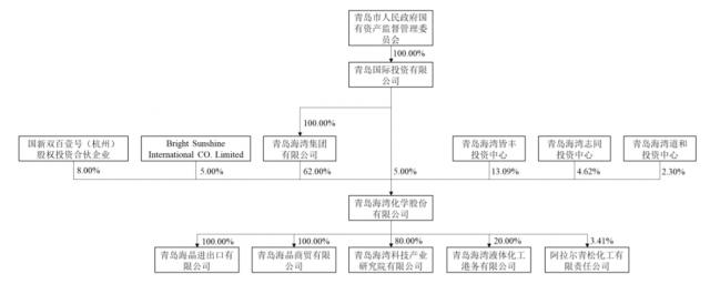 青岛市国资委拥有青岛国投。 100% 青岛国投拥有海湾集团股份 100% 青岛市国有资产监督管理委员会通过青岛国投、海湾集团对公司进行控制,是公司的实际控制人。