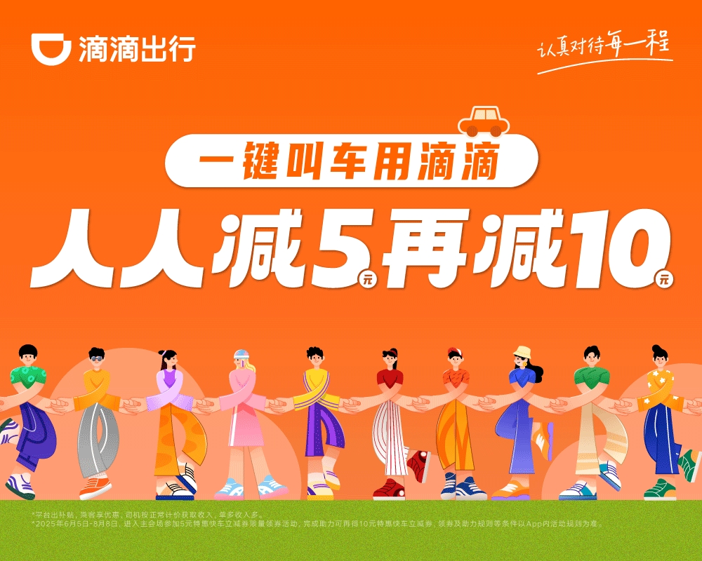 即日起至7月13日,在哈尔滨、洛阳、西宁、遵义等98个城市的用户打开滴滴App或小程序,进入“一键叫车用滴滴,人人减5元再减10元”活动,可限量领取或助力领取5元打车立减券,部分城市可通过助力领取,完成相关助力任务后可再得10元打车立减券。在呼和浩特、九江、唐山等13个城市,完成助力任务可得出租车立减5元到15元不等的优惠券。