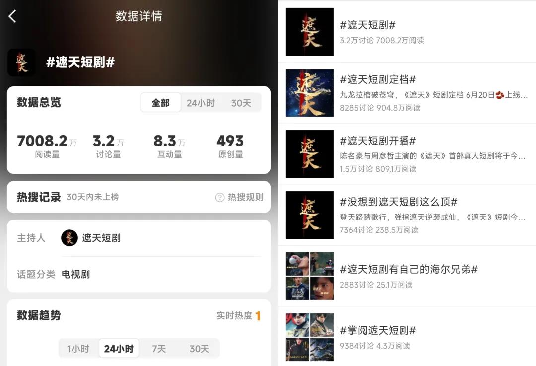 上线前,《遮天》在抖音、微博等平台同步预热,定档话题登上微博热搜榜。