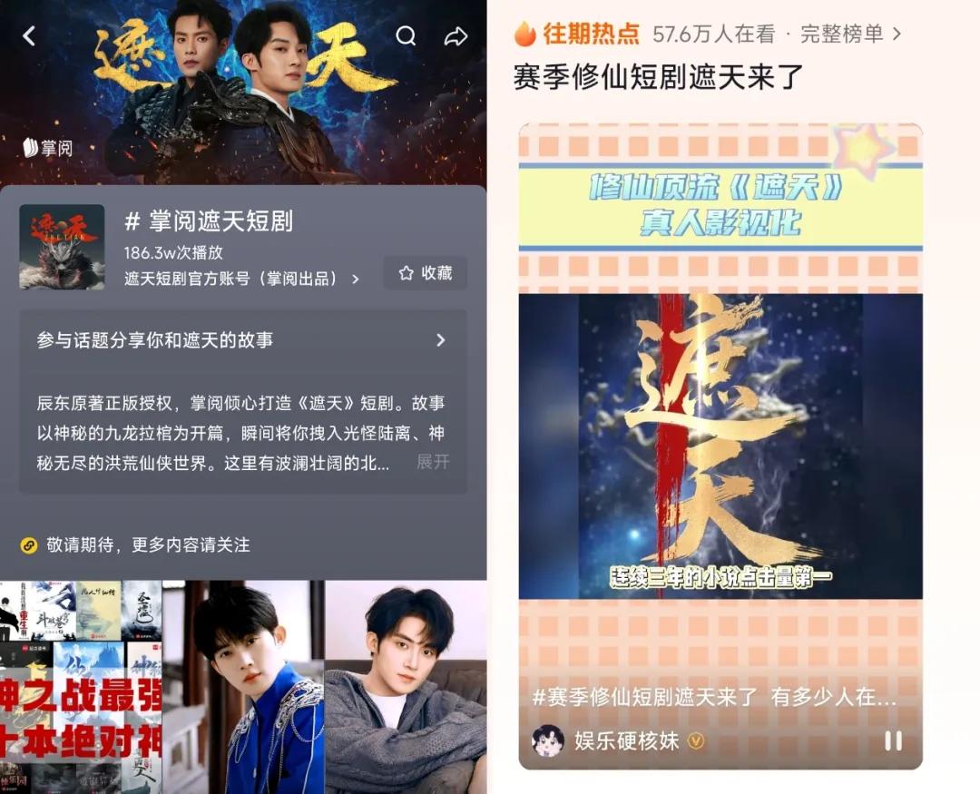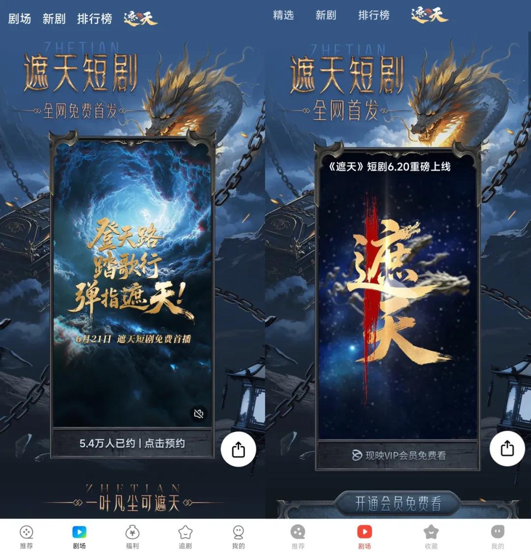 “遮天”栏目也设置在掌阅旗下的现映APP和速看短剧APP中,预约人数达到54,000人。