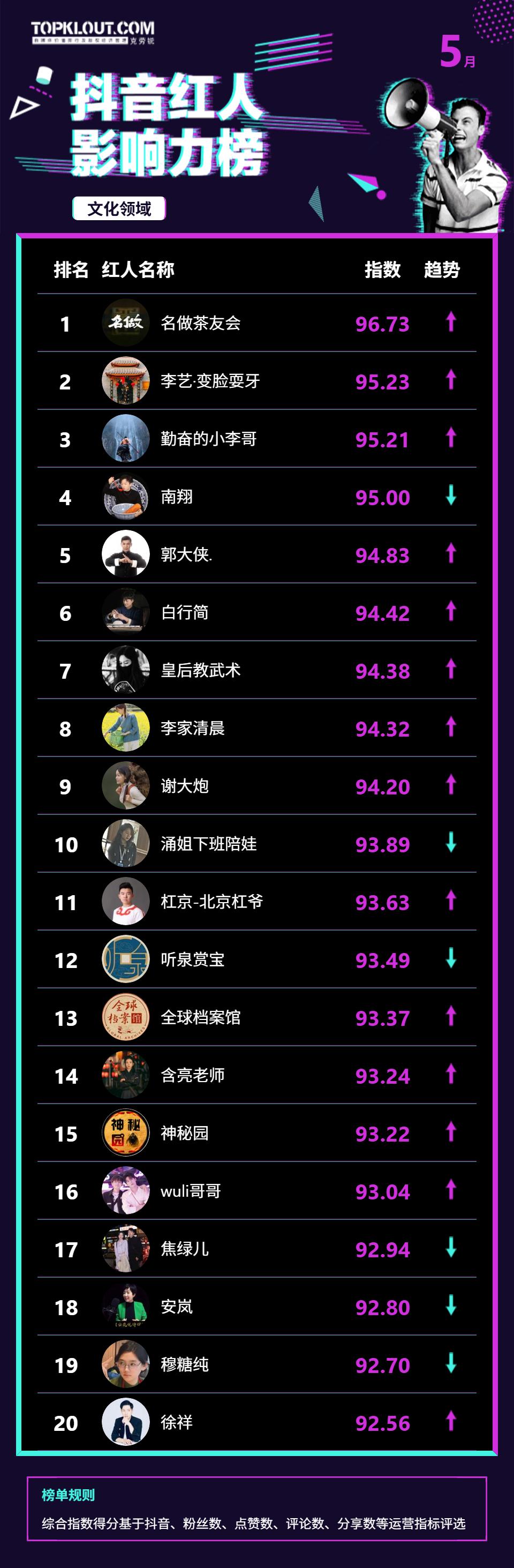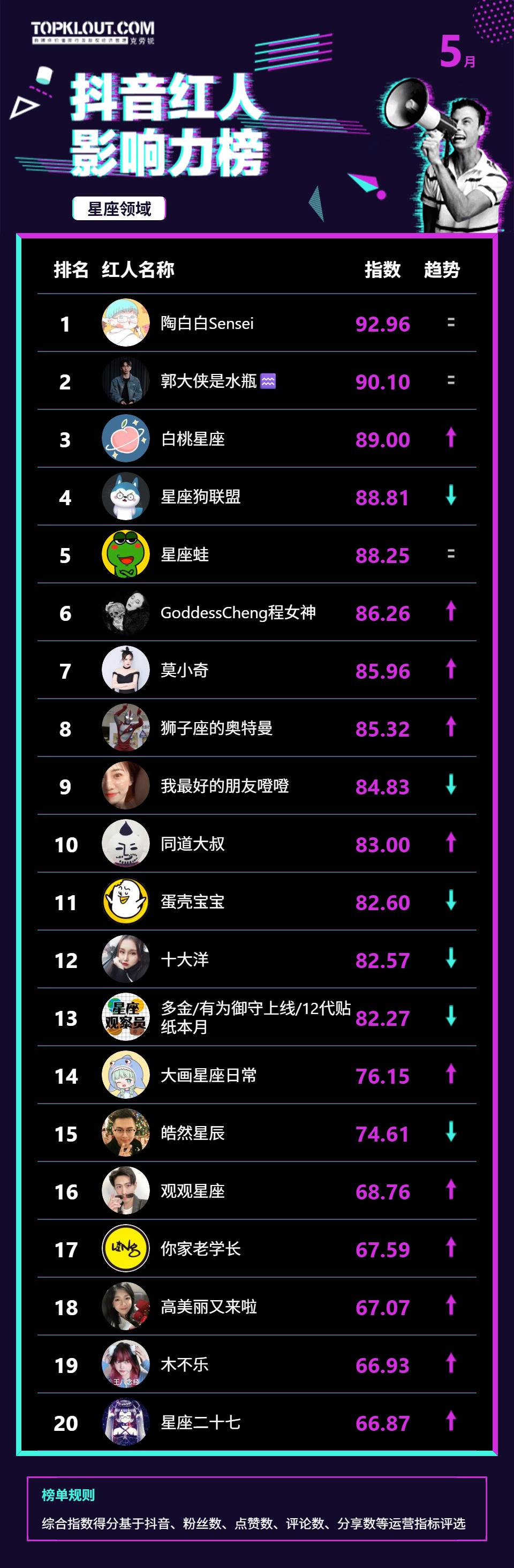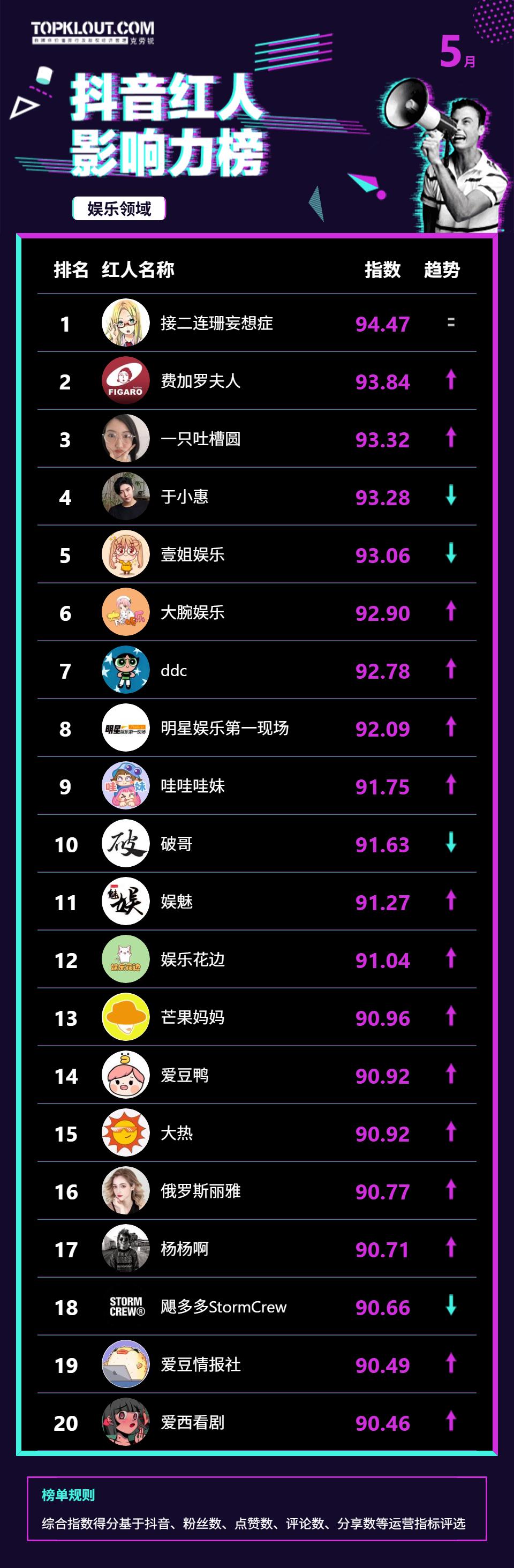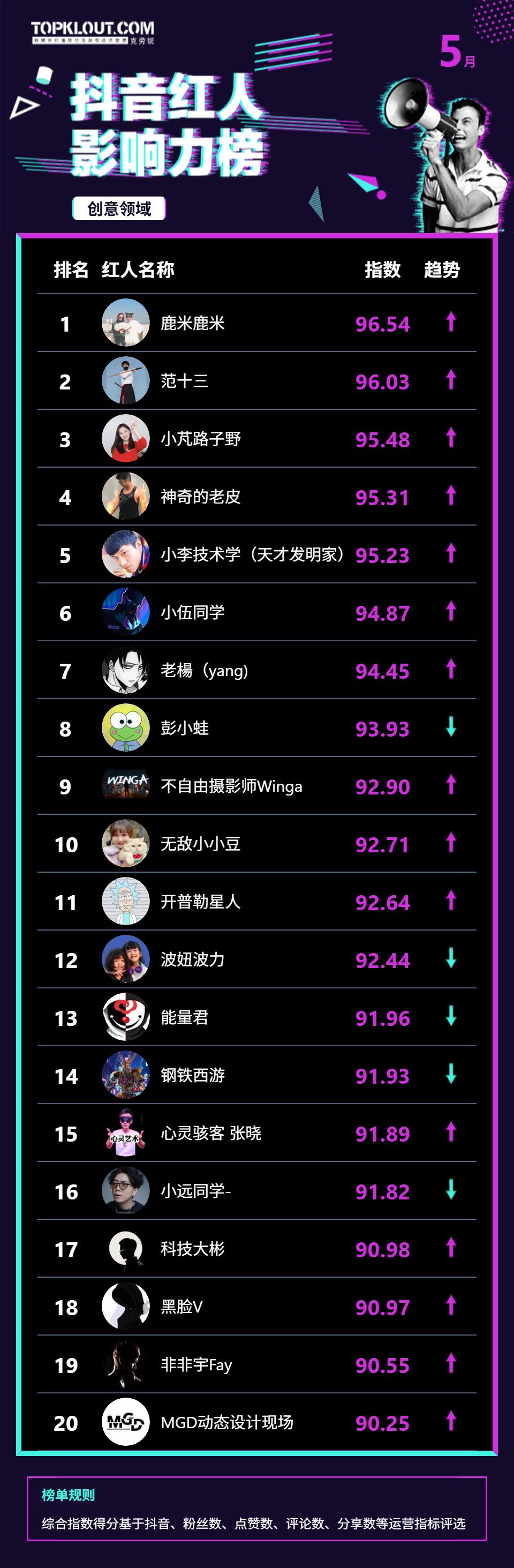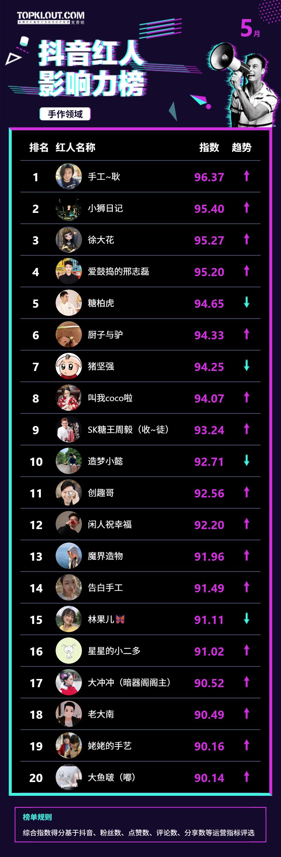 五月份抖音红人人气榜揭秘:垂直领域大爆发,看创作者如何突破?