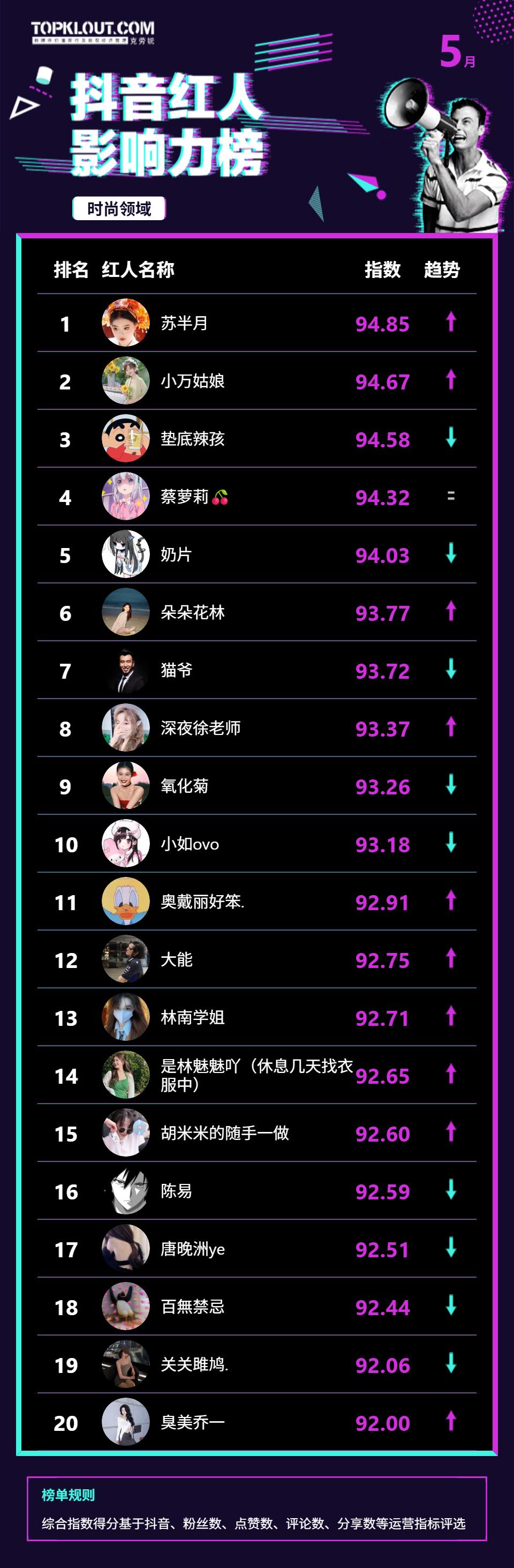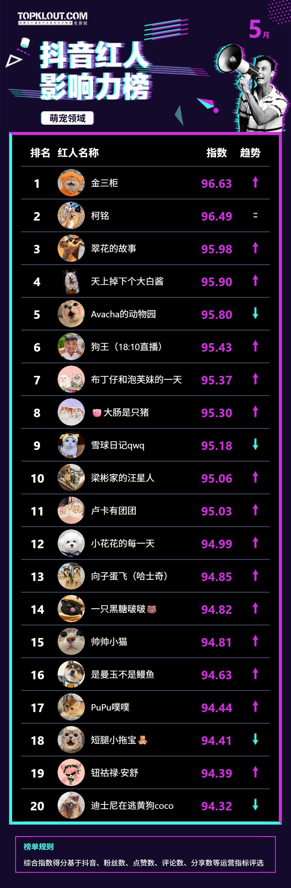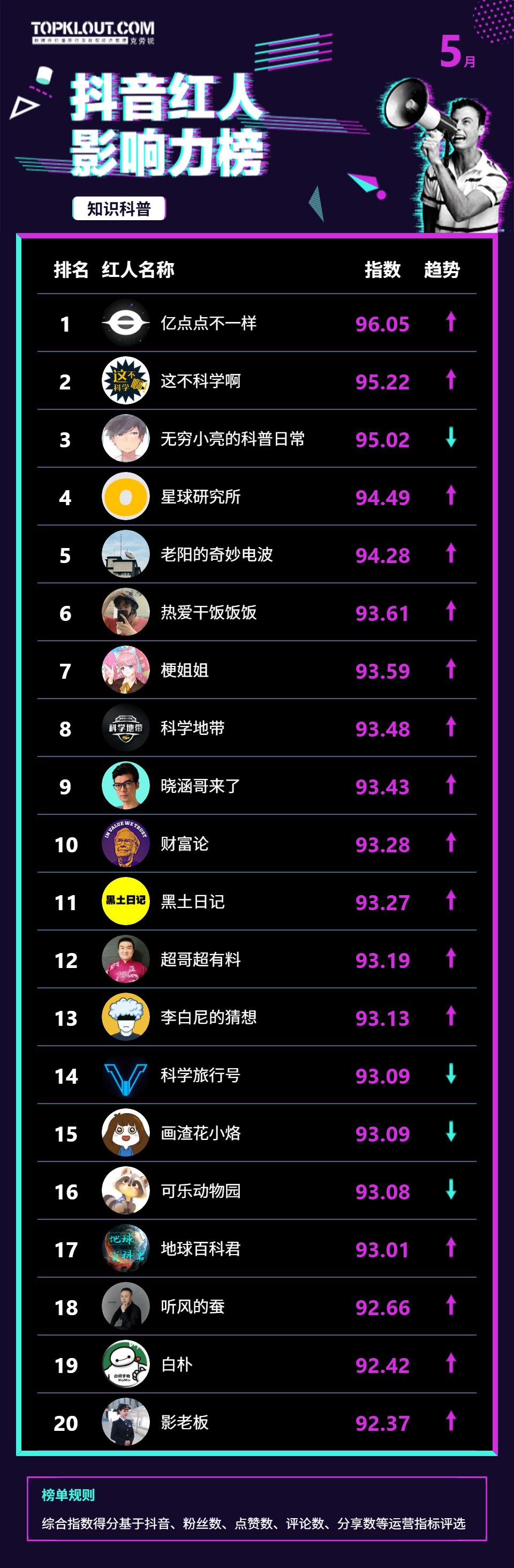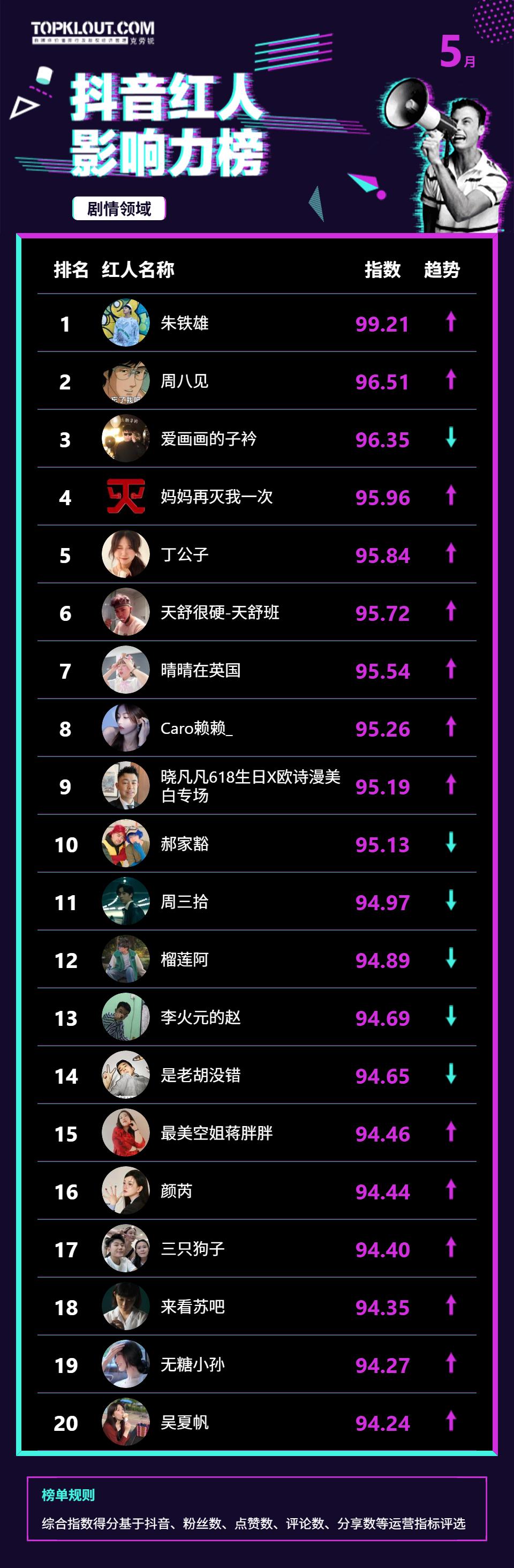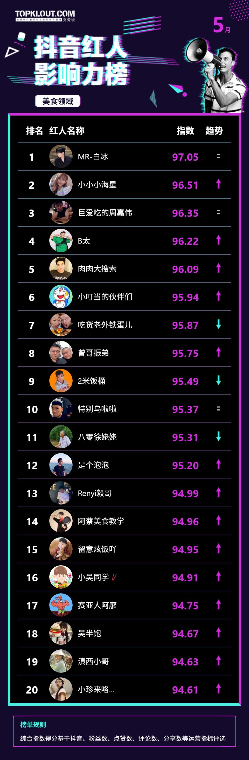 五月份抖音红人人气榜揭秘:垂直领域大爆发,看创作者如何突破?