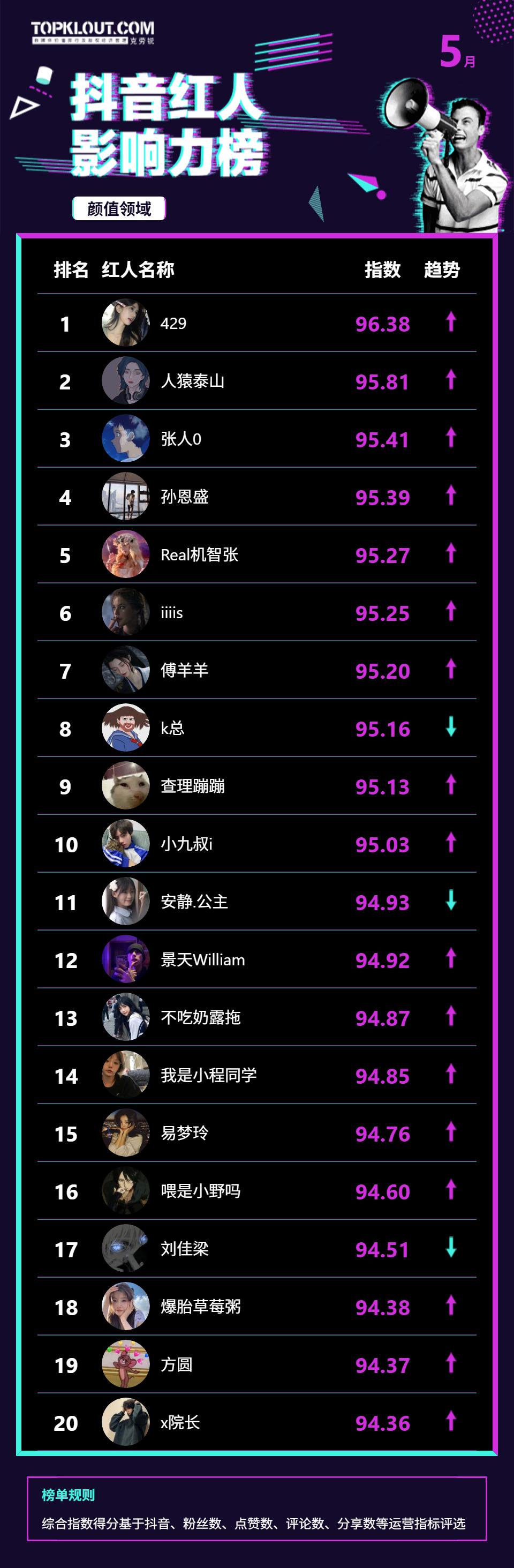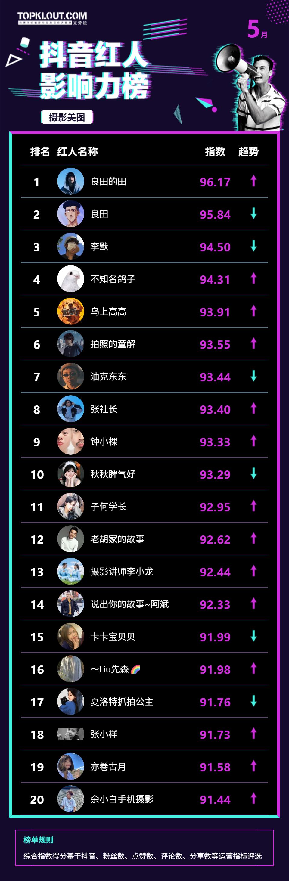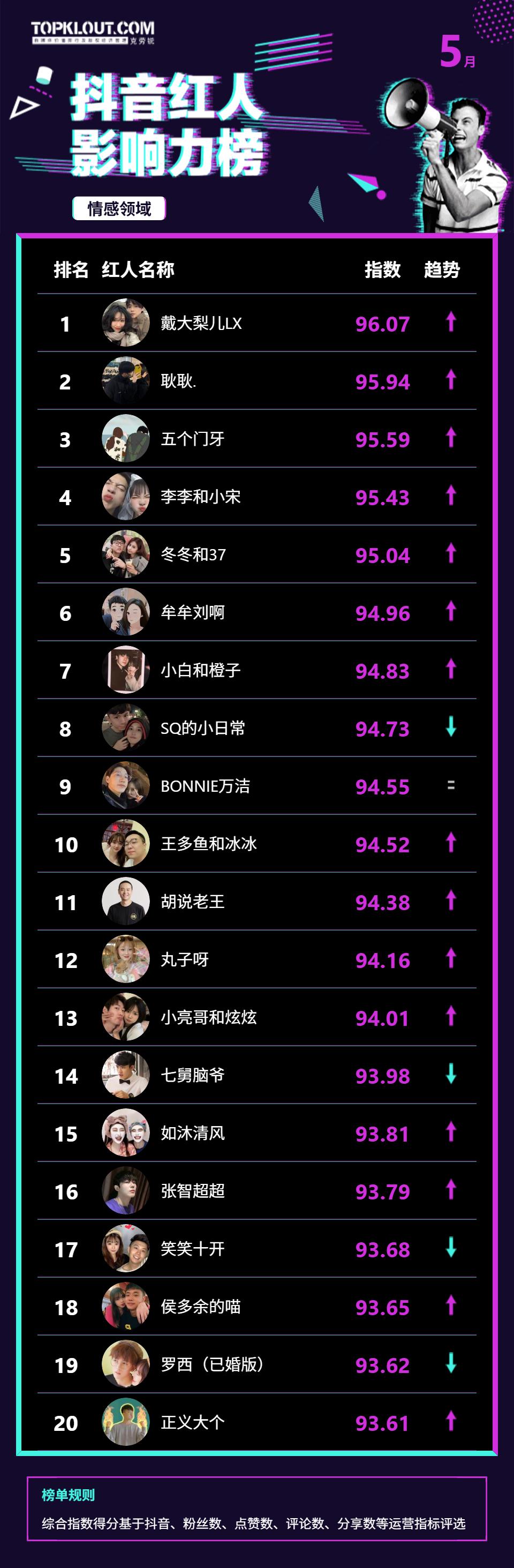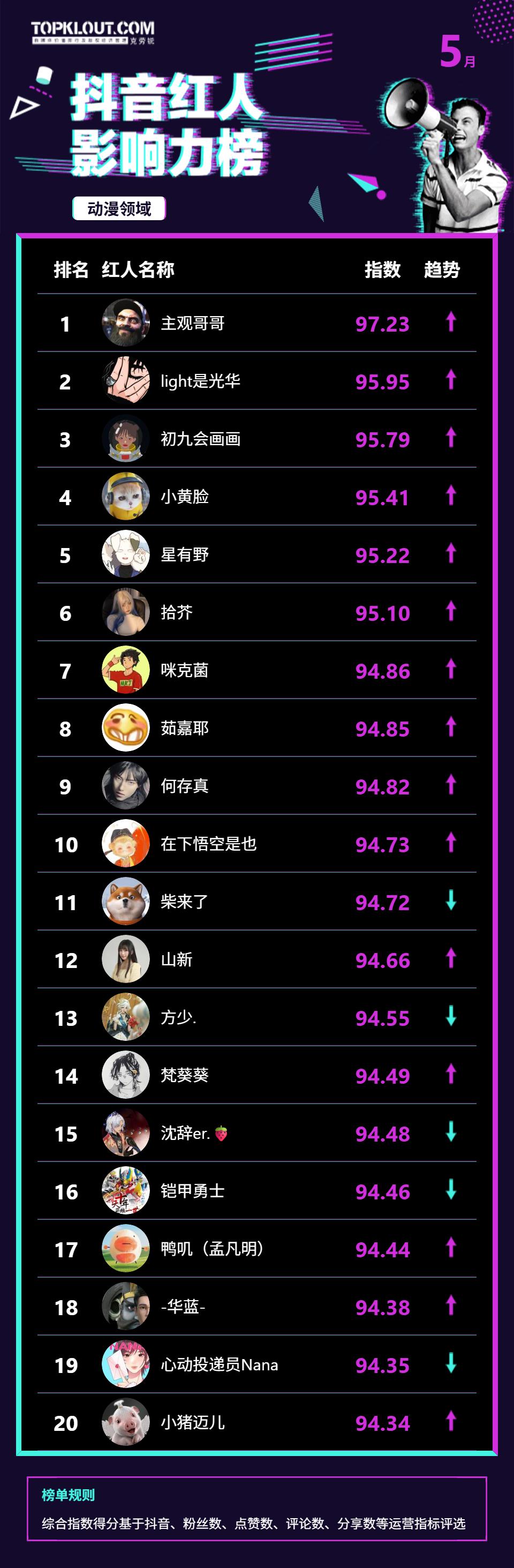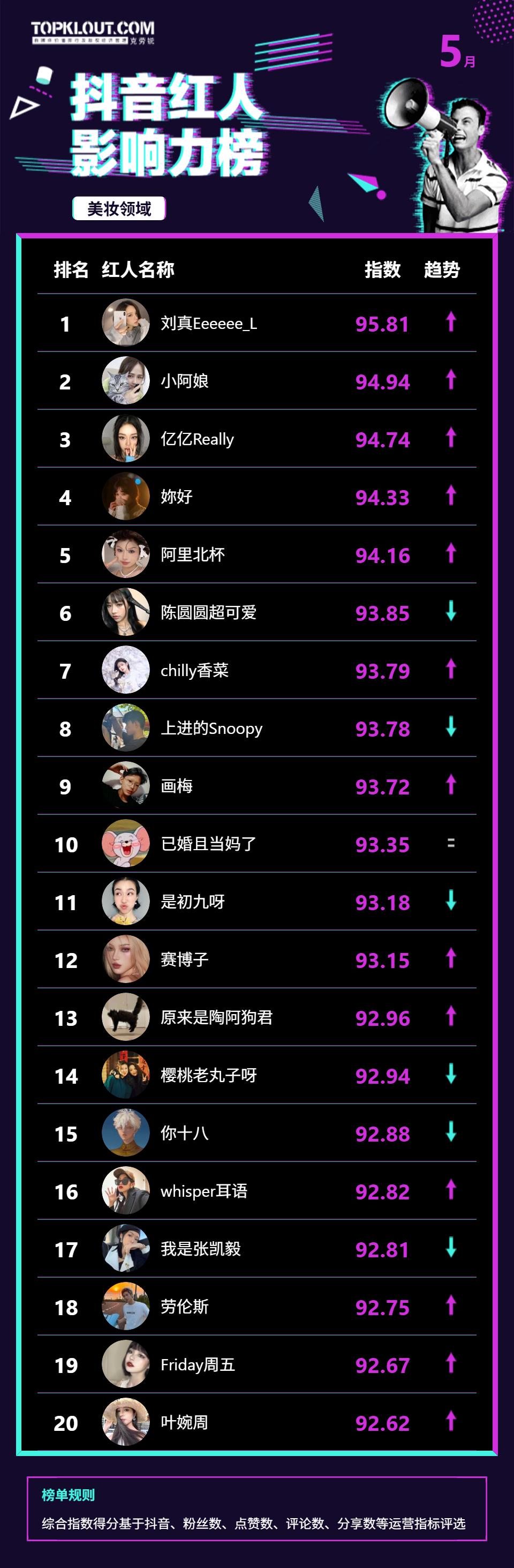 五月份抖音红人人气榜揭秘:垂直领域大爆发,看创作者如何突破?