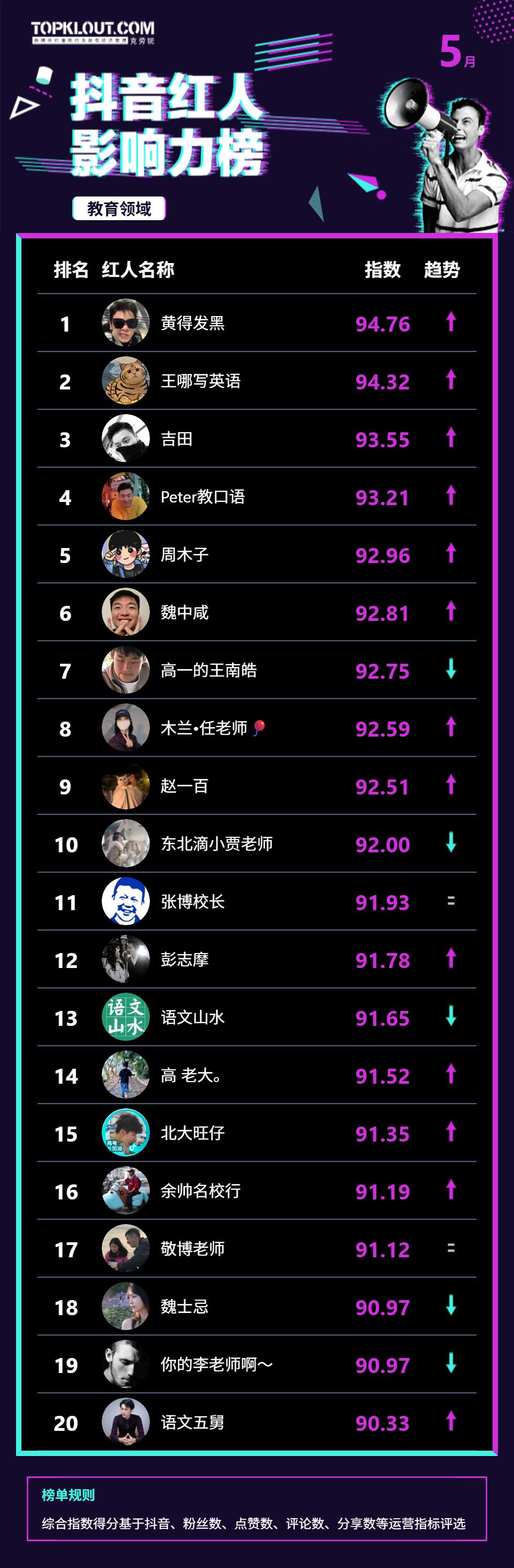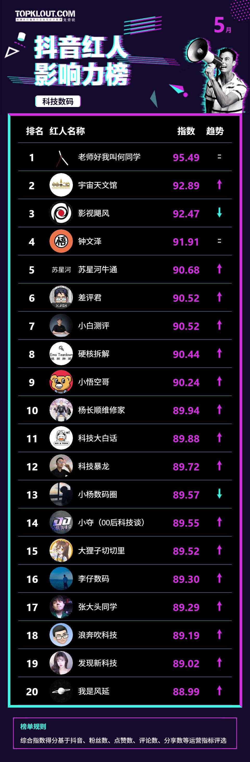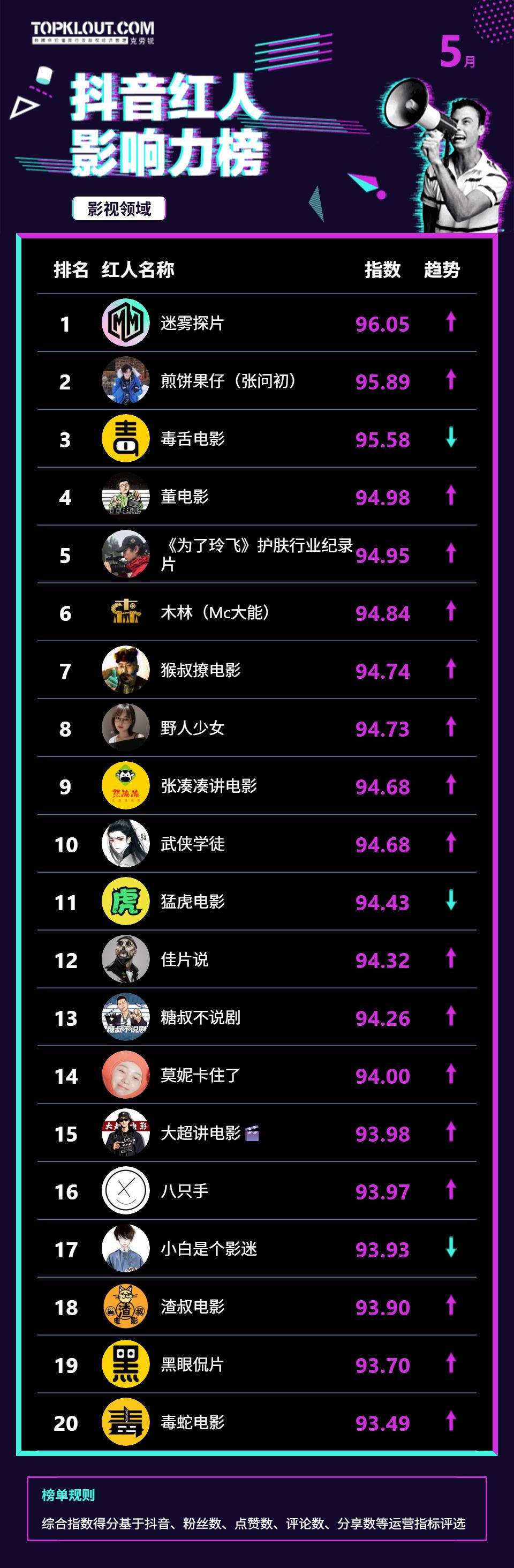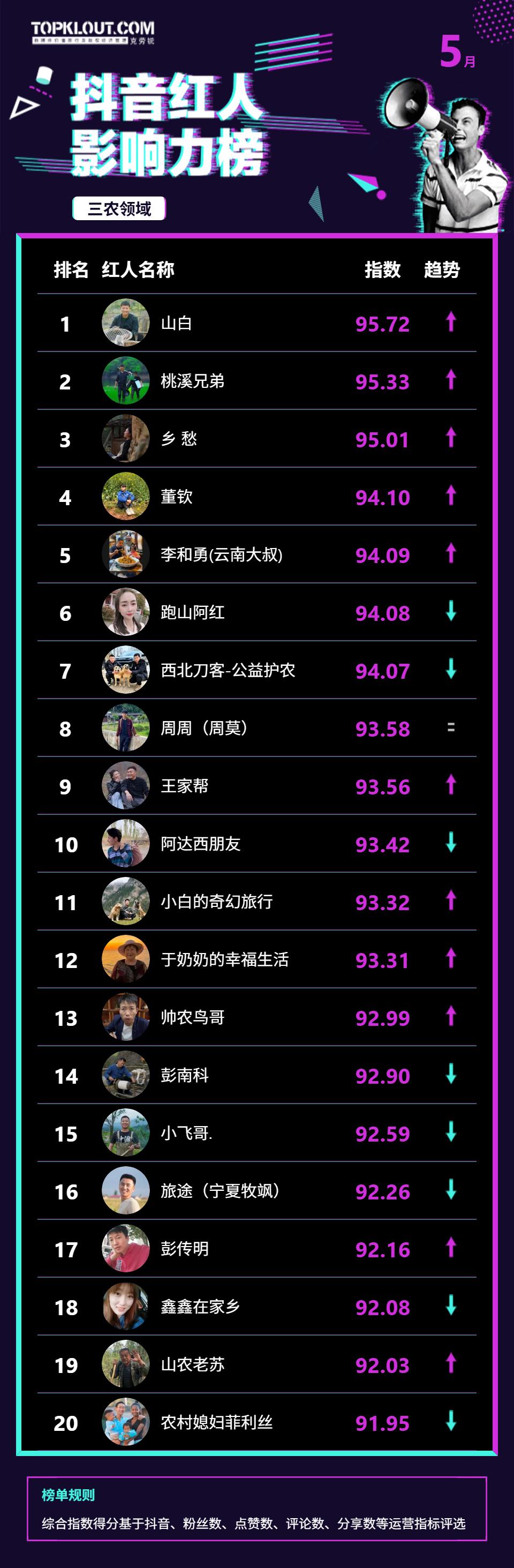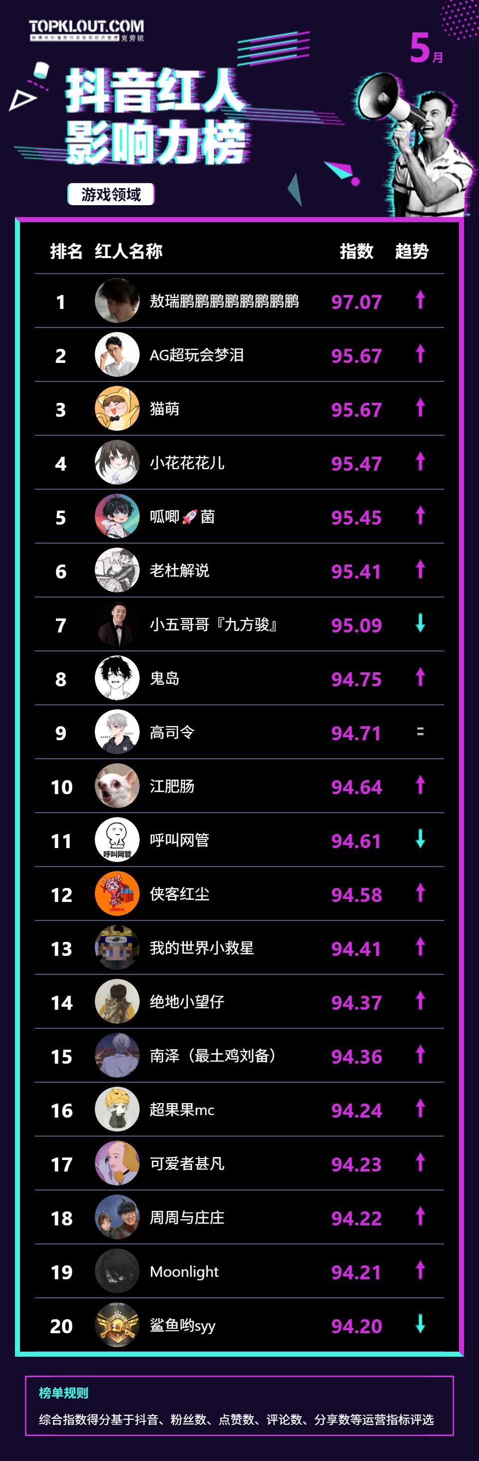 五月份抖音红人人气榜揭秘:垂直领域大爆发,看创作者如何突破?