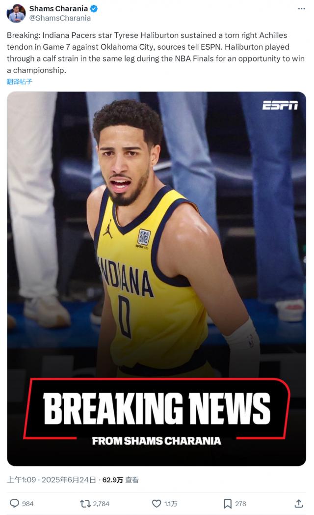 右跟腱撕裂!哈利伯顿伤势确定!中国银行今年夏天撤销