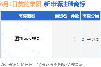 证券之星消息,根据天眼查 APP 数据显示,近日,美的集团股份有限公司新递交 1 商标申请。商标申请的详细信息如下: