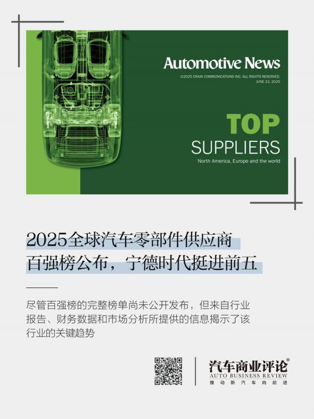 6 月 23 日本,美国汽车新闻(Automotive News)》发布了 2025 全球汽车零部件供应商百强榜单。