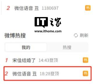 IT 世家 6 月 23 今天晚上,日消息,"微信语音 丑“话题登顶微博热搜,部分网友调侃微信最新修改的语音发送界面。