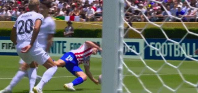 第 60 几分钟,格列兹曼小角度低射,维克托扑出底线。
