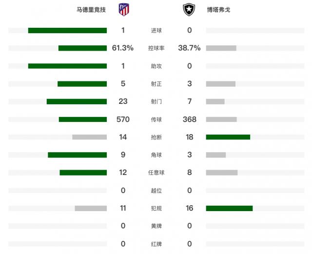 世俱杯:马竞1-0还是出局了!格子替补杀人 3队同积6分 博塔弗戈获得第二名