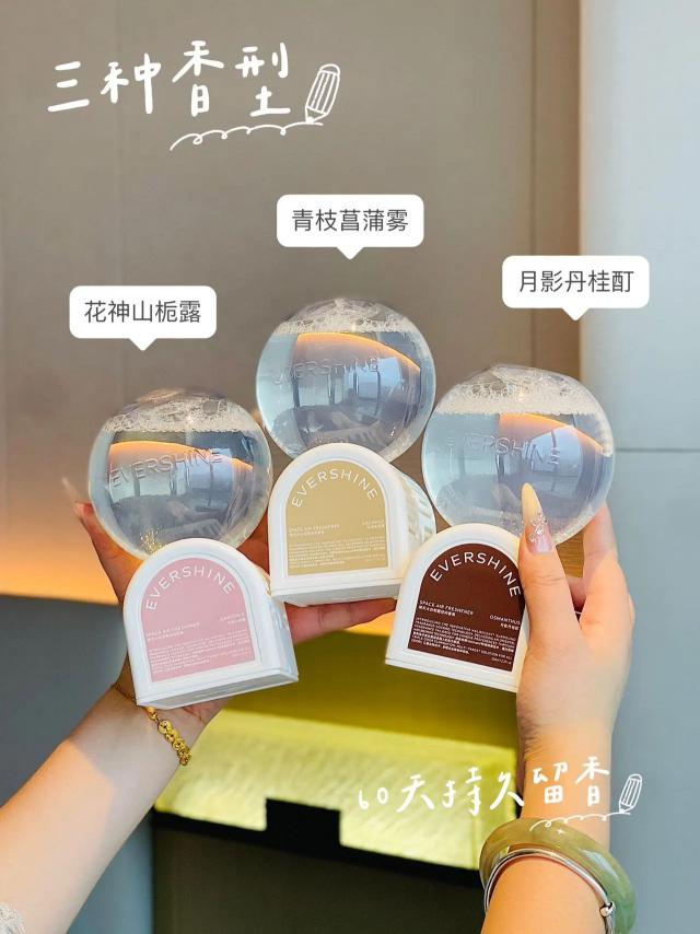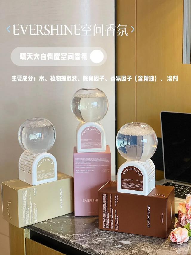 EVERSHINE 空中的香味简直就是我的救星——倒着放就可以自动扩香,连通电都省了。