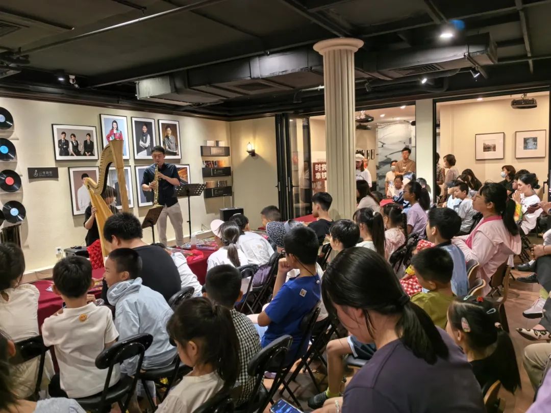 音乐会现场,古典音乐悠扬的旋律如潺潺溪流,滋润着每个孩子的心。旅行法萨克斯表演者许广霹雳和上海爱乐乐团竖琴首席艺术家陈邈颖一起出现。醇厚而深邃的萨克斯遇到了空灵而清澈的竖琴二重奏,开始了一场关于音质交融和情感共鸣的精彩演唱会之旅。他们以高超的技艺和饱满的热情,将每一首歌都诠释得淋漓尽致,让孩子沉浸在音乐的海洋中,治愈孩子的心灵,让他们感受到艺术的温暖和力量,打开孩子对音乐世界的认知之门。