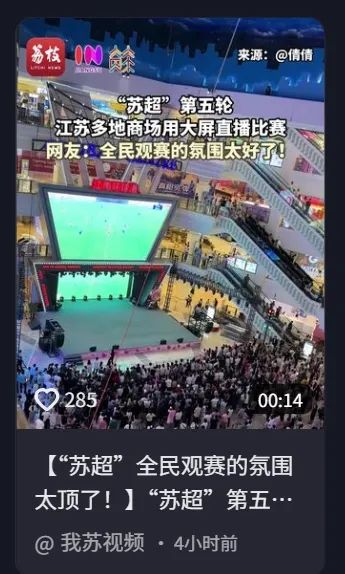 随着苏超的走红,很难买到票。不仅当地很多酒吧举办线下观看比赛,还有很多官方在户外设置的大屏幕观看比赛点。苏超已经有了观众基础和“第二场”观看比赛的热情,这是品牌不容错过的流量入口。