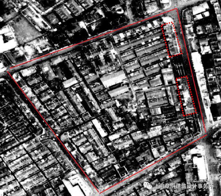 根据1948 年、2014 年、2018 2008年,在最近的地块航拍图中,我们可以发现现有建筑的平面基本保持不变。从最近的地块鸟瞰图中,我们可以看到四川北路975-987号左侧屋顶的不规则建筑。四川北路1297-1311南段明显是规则的斜坡屋顶,北部是不规则的屋顶。