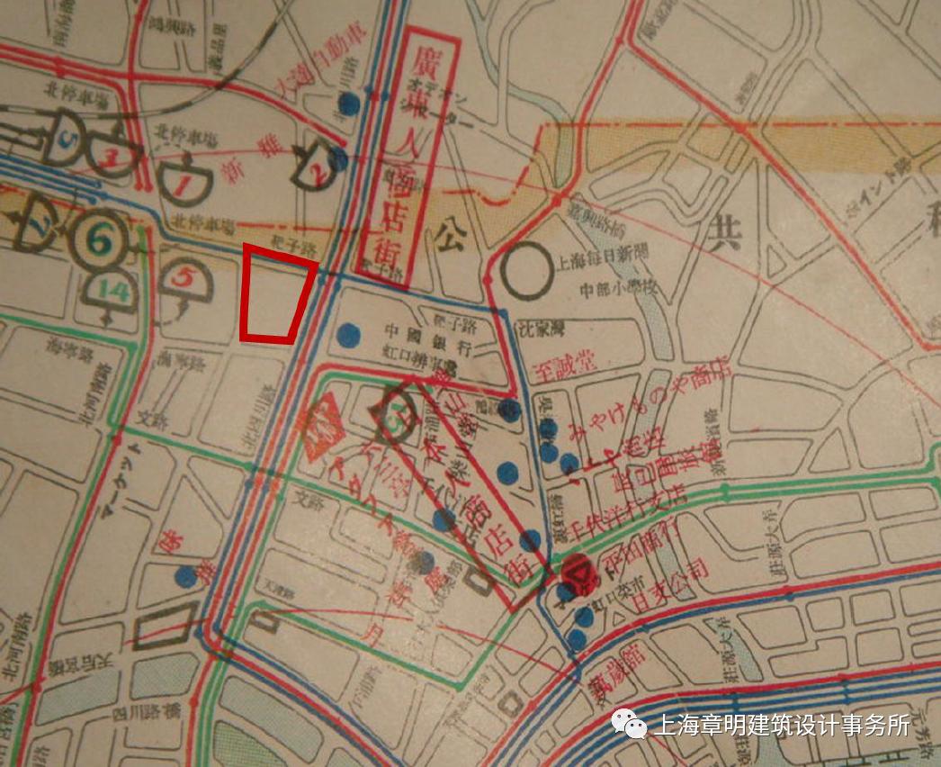 四川北路1297-1311 号南段图纸1931 2008年日本编写的《上海观光便览地图》,地块周围有广东人商店街和日本人商店街。