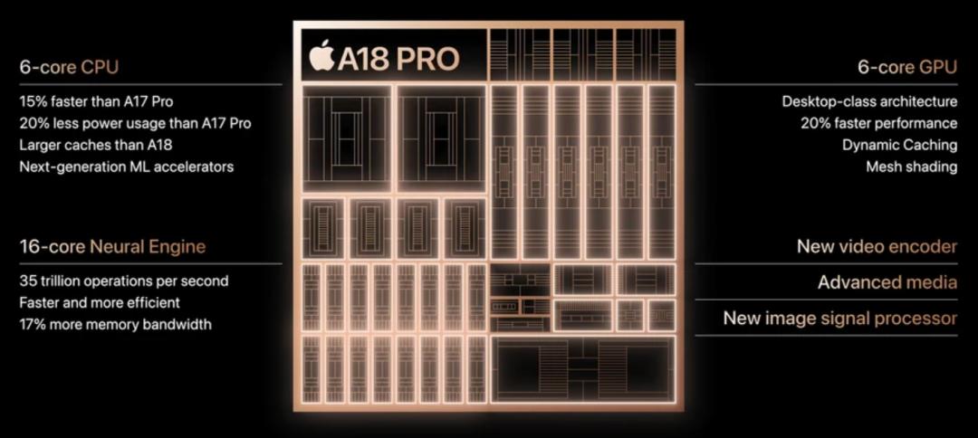 其实深度自主研究在AI方面可以带来很多优势。比如苹果芯片的GPU模块可以优化图像处理和AI计算,其神经网络引擎(NPU)更加具有苹果独特的优势,对端侧AI各种功能的加速进行了深度提升。
