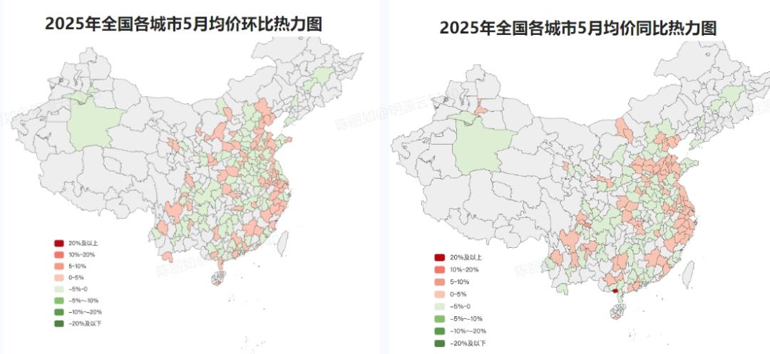 根据国家统计局的数据,5月份各线城市商品房销售价格环比下降。一二线城市平均销售价格环比下降0.2%。